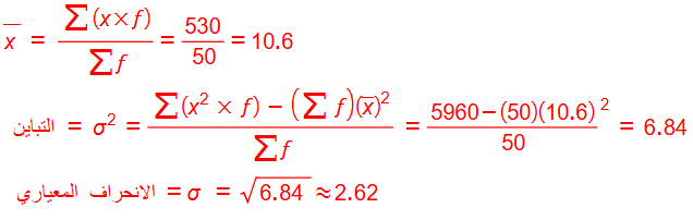 4) أقدر التباين والانحراف المعياري لهذه البيانات بطريقتين مختلفتين