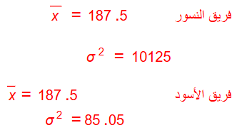 أطول لاعبي فريق الأسود أمثر تجانسا ؛ لأن تباينها أقل من تباين أطوال فريق النسور