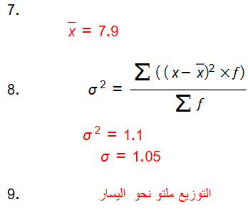5) مسألة مفتوحة: أجمع بيانات ل20 مشاهدة، وأنظمها في جدول تكراري ذي فئات، ثم أقدر الوسط الحسابي والتباين
