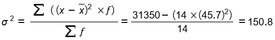 نعم ، يمكن تقدير التباين ؛ لأن حدود الفئات معطاة، ويمكن تحديد التكرار المقابل لكل فئة بطرح التكرار التراكمي السابق من التكرار التراكمي اللاحق والمقابل للحدود العليا للفئات ، ثم إنشاء الجدول على النحو الآتي :