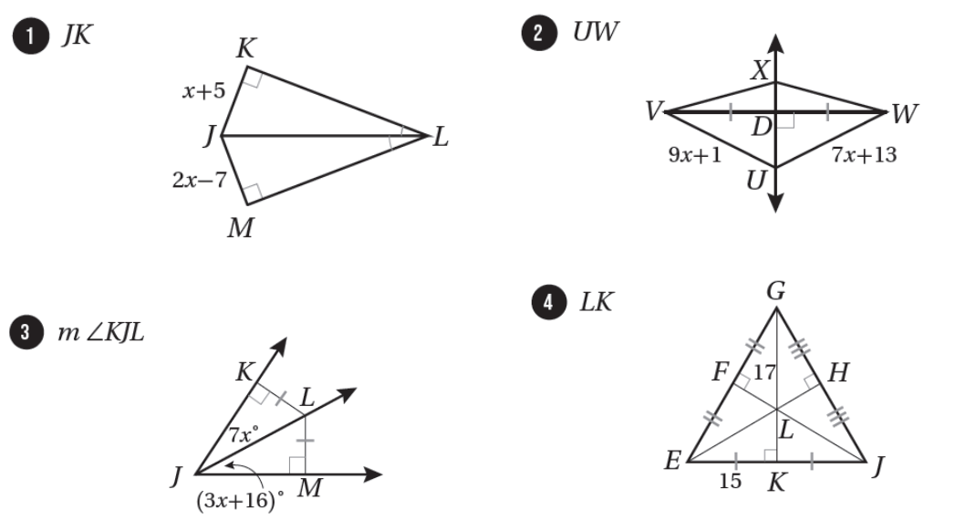 4) النقطة L نقطة تلاقي المنصفات العمودية لأضلاع المثلث، إذن لها نفس البعد عن رؤوس المثلث، أي: