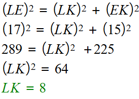 أستخدم نظرية فيثاغورس في المثلث LEK