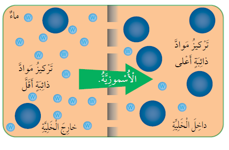 هي طريقة انتقال الماء من الوسط الأقل تركيزا بالمواد الذائبة فيه إلى الوسط الأعلى تركيز بالمواد الذائبة . |
