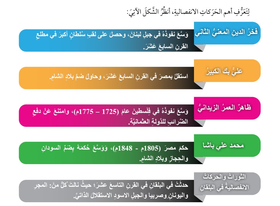 - أعدد الحركات الانفصالية عن الدولة العثمانية وأماكن ظهورها .