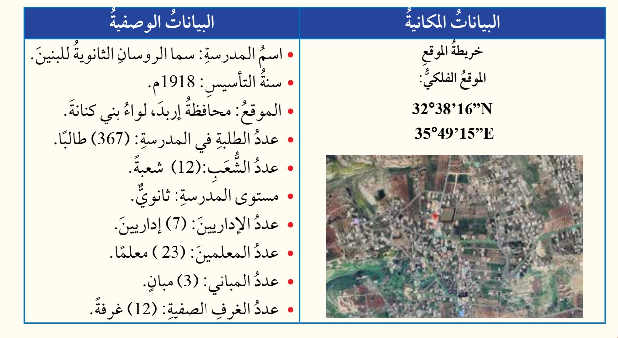 - أبيّنُ أهميةَ البياناتِ المكانيةِ والوصفيةِ.