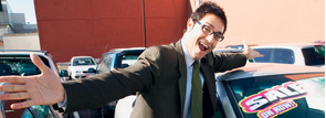 The man in the picture: ingenious (p), shrewd (p), crafty (n), cunning (n), devious (n) The customer: gullible (n), naive (n), trusting (p), unsuspecting (n), credulous (n)
