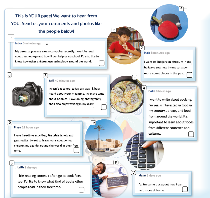 2 Look and read. Match the pictures to the WOW! Magazine comments.