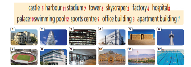 3 Which places are for sports? stadium, sports centre, swimming pool