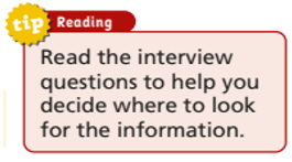 - 1.Look quickly at the interview. Which questions and answers mention these things?