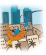 Yousuf was in his bedroom. He was trying to write a story for his homework, but he didn’t have any good ideas. He stopped writing and started to draw. He sketched a really big orange bird with a long blue tail. He was pleased with his picture! After that, he decided to go to bed. He was lying in his bed when he suddenly heard a noise. He looked up. The bird from his picture was flying in through the window! The bird asked, ‘Do you want to fly?’ Yousuf was amazed. He was scared of flying, but he loved adventures, so he climbed onto the bird’s back. The bird zoomed out of the window and flew over the city. Yousuf saw skyscrapers and factories. They flew over the office building where his mum worked. They flew over the harbour. The people in the boats looked very small. ‘Wow!’ Yousuf yelled.