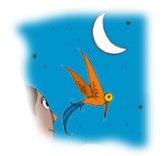 At last, the bird flew back to the apartment building where Yousuf lived, and back into his bedroom. He climbed off the bird’s back and got into bed. ‘Goodbye, bird,’ he said. He quickly went to sleep. When Yousuf woke up in the morning, he remembered his amazing adventure. ‘Oh,’ he whispered, sadly. ‘It was just a dream.’ But then he smiled. Now he had an idea for his homework! He started to write. When he finished his story, he looked up. He thought he saw something orange next to the window. Was it the bird? Or was it his imagination?