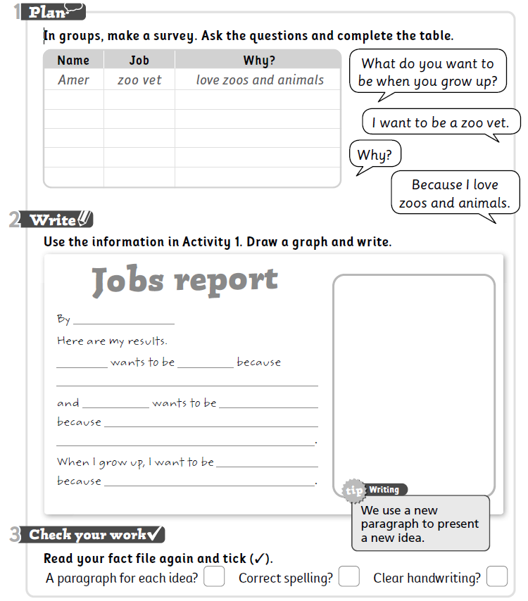 Write about your survey and what you want to be when you grow up.