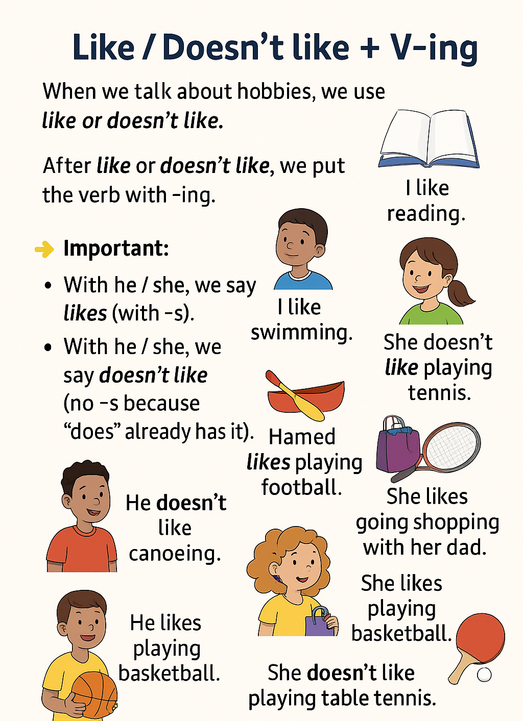 Like/doesn't like + V-ing