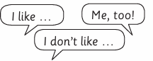 Tell your partner. What do you like doing? What don’t you like doing?