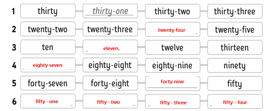 67 sixty-seven 26 twenty-six 99 ninety-nine