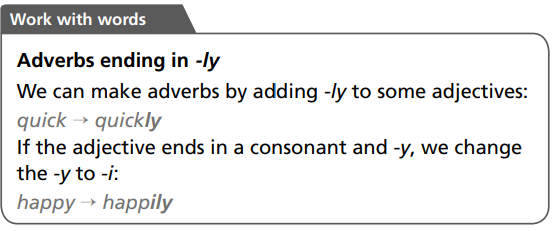 3 Read the Work with words box. Then write the adverbs.