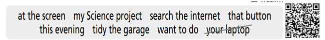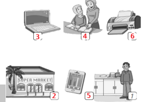 Heba: Please can I use 1 your laptop, Mum? Mum: Of course. What do you 2 want to do? Heba: I need to 3 search the internet. I want to look at a science website. Can you show me how to turn it on? Mum: That’s easy. Press 4 that button there. Heba: OK. What next? Mum: Look 5 at the