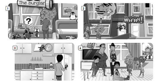 Hamed and his (3) parents come home. They find Bo, the burglar, and Katy and Millie in the house. It isn’t a burglar! It’s a (4) boy. He’s Hamed’s (5) cousin.
