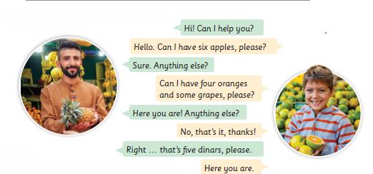 Look at the picture of Omar in Activity 3 and write. How many fruits does he have? Which do you like?