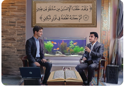 من خلال وجود القرآن الكريم والآية الكريمة الّتي في الصّورة { ولقد خلقنا الإنسان من سلالة من طين ، ثمّ جعلناه نطفة من قرارٍ مكين }