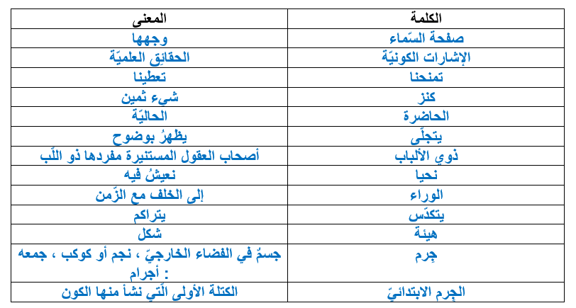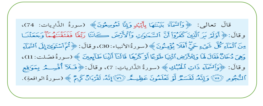 - القرآن الكريم مليء بالإشارات الكونيّة الّتي تعبّرُ عن الإعجاز العلميّ ( نشأة الكون )