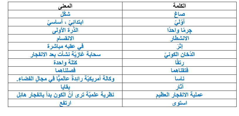 سؤال : عدد مراحل نشأة الكون كما ورد في النّص ؟