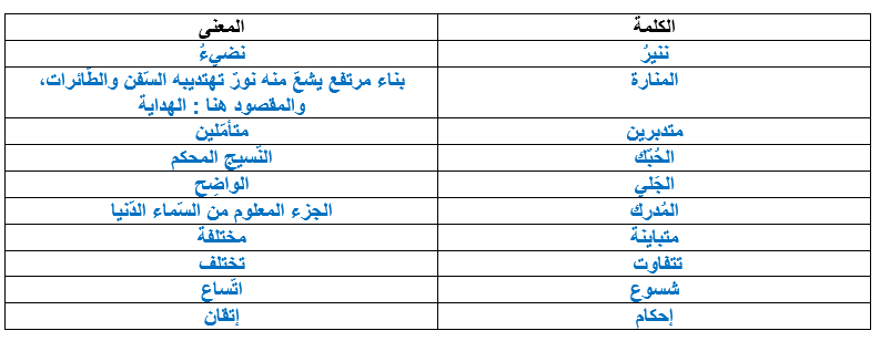 وإنّنا إذ ننير عقولنا بمنارة القرآن: شبّه القرآن بالبناء المرتفع المُشع الّذي يرشد السّفن والطّائِرات في حركتها ، وشبّه عقولنا بالسّفن والطّائرات الّتي يجب إرشادها.