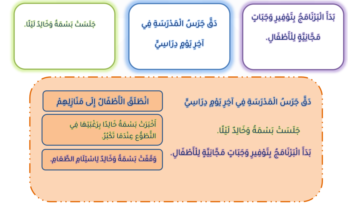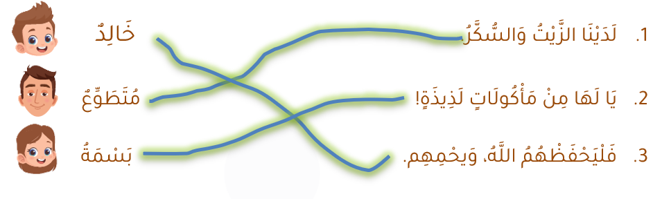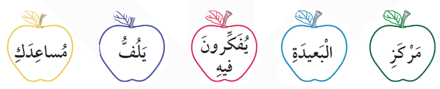 أَخْتَارُ الْمَعْنَى الْمُنَاسِبَ لِلْكَلِمَاتِ وَالتَّرَاكِيبِ الْمُلَوَّنَةِ، ثُمَّ أَكْتُبُهُ فِي الْفَرَاغِ: