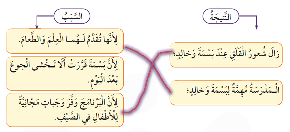 أَصِلُ بَيْنَ السَّبَبِ وَالنَّتِيجَةِ كَمَا سَمِعْتُ فِي النَّصِّ :