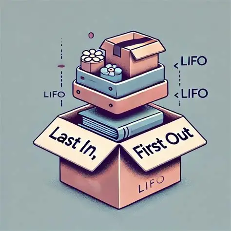 وبما أنّ الأشياء توضع فوق بعضها البعض، فإن ما يدخل بالأخير سوف يخرج أولاً (Last In First Out ) والتي يرمز لها (LIFO ). ولتوضيح هذه القاعدة لنأخذ المثال التالي: