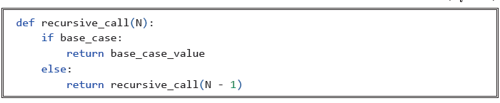 recursive_call: اسم الدالة والتي يكون لها مدخلات معينة يتم وضعها داخل أقواس وهنا تم وضع حرق (N) حيث يمثل عدد صحيح