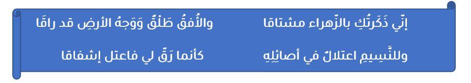 يا أهلَ أندلسٍ للهِ دَرُّكُم ماءٌ وظلٌ وأنهارٌ وأشجارٌ