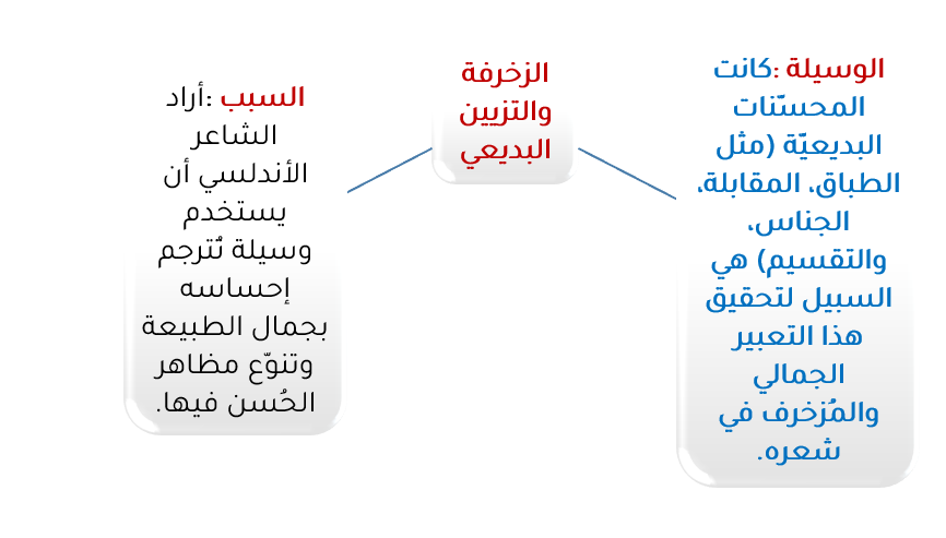 - الاستحسان والوصف: استحسن الشعراء الأندلسيون جمال الطبيعة الخلابة لوطنهم.