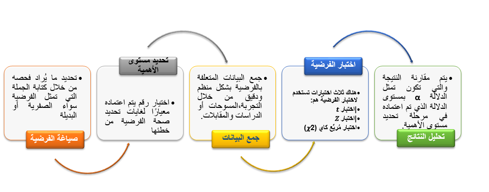 هناك خمس خطوات يجب القيام بها عند البدء بعملية إختبار الفرضية تتمثل فيما يلي: