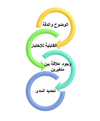- بما أن الفرضية تستخدم في اختبار علاقة متغير بمتغير آخر، لذا يجب أن تكون لدى الفرضية المقدرة على اختبار العلاقة بين متغيرين أو أكثر.( وجود علاقة بين مُتغيِّرين)