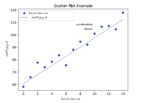 هنا نحاول أن نجد علاقة بين عدد ساعات الدراسة والعلامة في الإمتحان لمعرفة كيف يكون تأثير عدد ساعات الدراسة على أداء الطالب في الامتحان