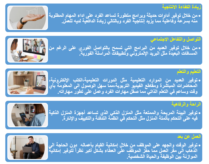 الإستخدام المفرط للتكنولوجيا يؤدي الى إدمان الفرد عليها مما يفقده التركيز ويشتت إنتباهه وبالتالي يؤدي الى انخفاض إنتاجيته. |