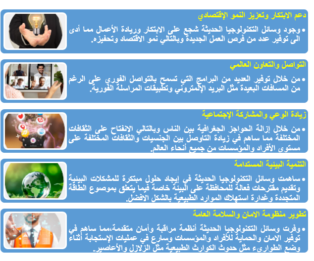 تتمثَّلُ أبرزُ وسائل وتقنيات التكنولوجيا الحديثةِ في ما يأتي: