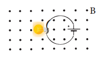 10- مصباح مضيء يتصل مع حلقة دائرية مغمورة في مجال مغناطيسي منتظم عموديا على مستوى الحلقة كما في الشكل المجاور , في أثناء خروج الحلقة من منطقة المجال المغناطيسي فإن إضاءة المصباح