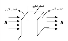 2- في الشكل المجاور سطح مغلق مكعب الشكل مغمور في مجال مغناطيسي , اذا تم مضاعفة المجال المغناطيسي ثلاثة أمثال ما كان عليه وزاد طول ضلعه ضعف ما كان عليه فإن التدفق المغناطيسي الكلي على المكعب يصبح