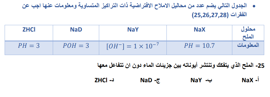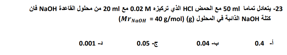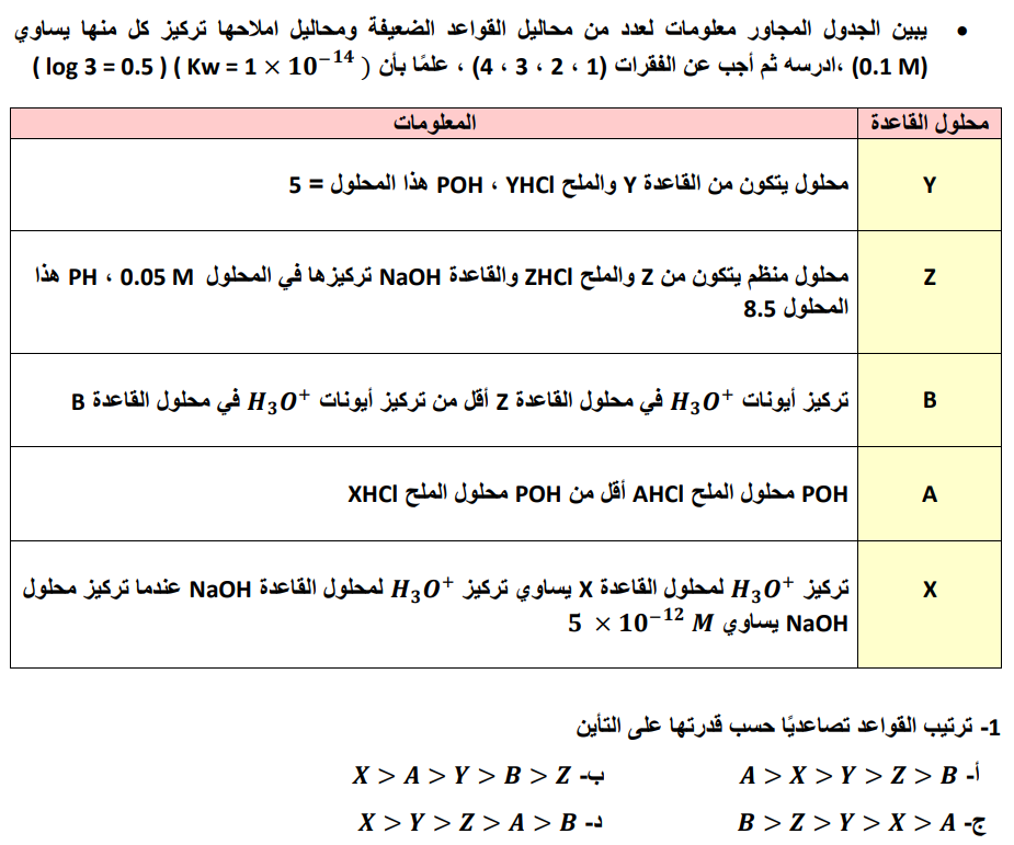 اسئلة صعبة الحموض والقواعد-احمد المصري