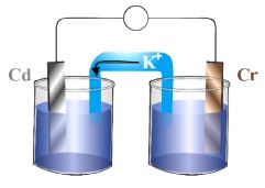 أ) تتحرك ē من قطب Cr إلى قطب Cd ب( تزداد كتلة صفيحة Cd