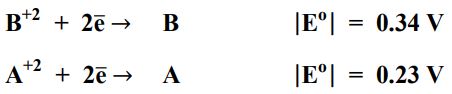 وقد لوحظ عند وصل نصف الخلية A مع نصف الخلية B أن الإلكترونات تنقل من AإلىB، كما لوحظ عند وصل نصف الخليةA مع قطب الهيدروجين أن الإلكترونات تنقل من قطب A إلى قطب الهيدروجين.. فإن °E للخلية الجلفانية المكونة من A و B = ( بالفولت ) :
