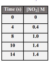 2N2O5(g) → 4NO2(g) + O2(g) فإن سرعة استهلاك N2O5 في الفترة الزمنية 8 إلى 12 تساوي بوحدة 1-M.s: