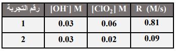 أ R = k [CIO2]1. [OH-]2 ( بR = k [CIO2]2. [OH-]1 (
