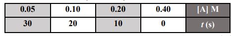 64- تم قياس تركيز مادة متفاعلة A بشكل دوري وتسجيله في الجدول الآتي:
