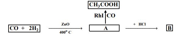 60 - تعتمد الطرق الصناعية في تحضير المركبات العضوية على توفير ظروف وعوامل مساعدة خاصة، ومن الأمثلة على ذلك تحضير حمض الإيثانويك من تفاعل أول أكسيد الكربون والهيدروجين حسب المخطط الآتي: