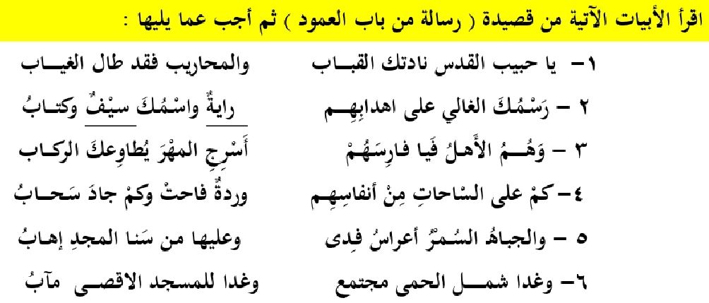 10) دلالة بعث الشاعر الحياة في القدس في قوله يا حبيب القدس نادتك القباب والمحاريب فقد طال الغياب.