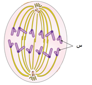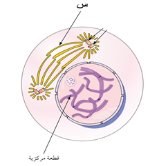 17- يمثل الشكل المجاور احد اطوار الانقسام المتساوي ماذا يمثل هذا الطور وما اسم العضية التي ينبعث منها التركيب س