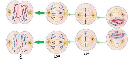23- يمثل الشكل المجاور مجموعة اطوار من الانقسام المنصف ما اسم الاطوار التي تمثلها الرموز س ، ص ، ع بالترتيب